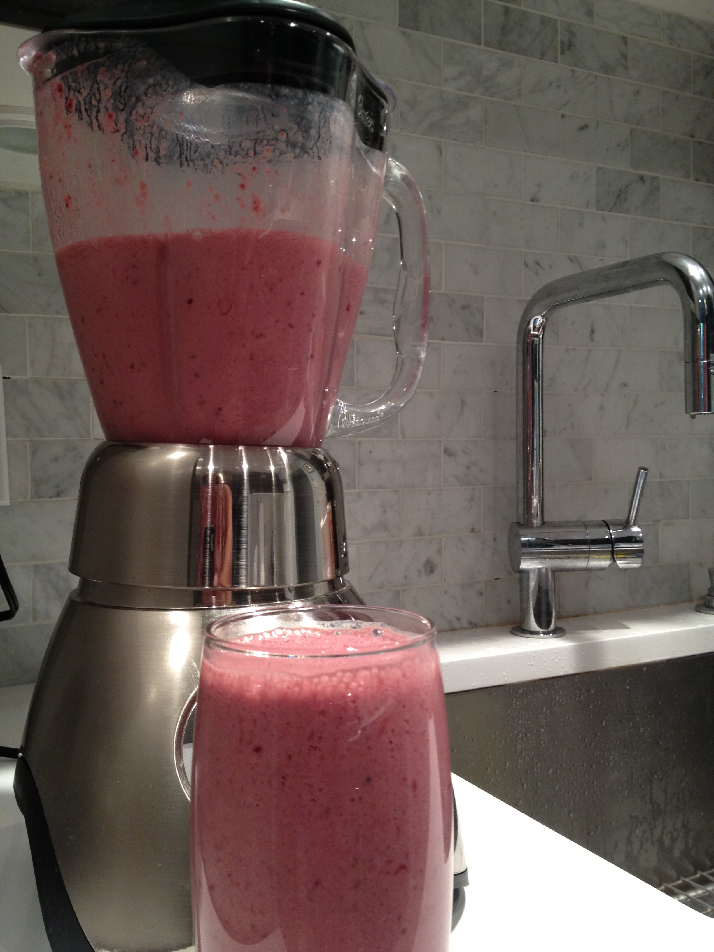 We’re all busy, and many of us find it easy to forgo breakfast, but smoothies represent a great start to the day. You can prep them the night before, and whip them up again as you’re preparing to head out the door in the morning. My favourite, pictured here, contains the following and easily lasts me three days.